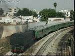 SNCFT - Tunisia The passenger service on the Tunis-Bizerte line (3 train pairs a day) was run by a motor car and two coaches, and a locomotive-hauled train. 040-DK-82 is ready to depart with the afternoon passenger train. Tunis, 30-10-2006 Digital photo by Marco van Uden |