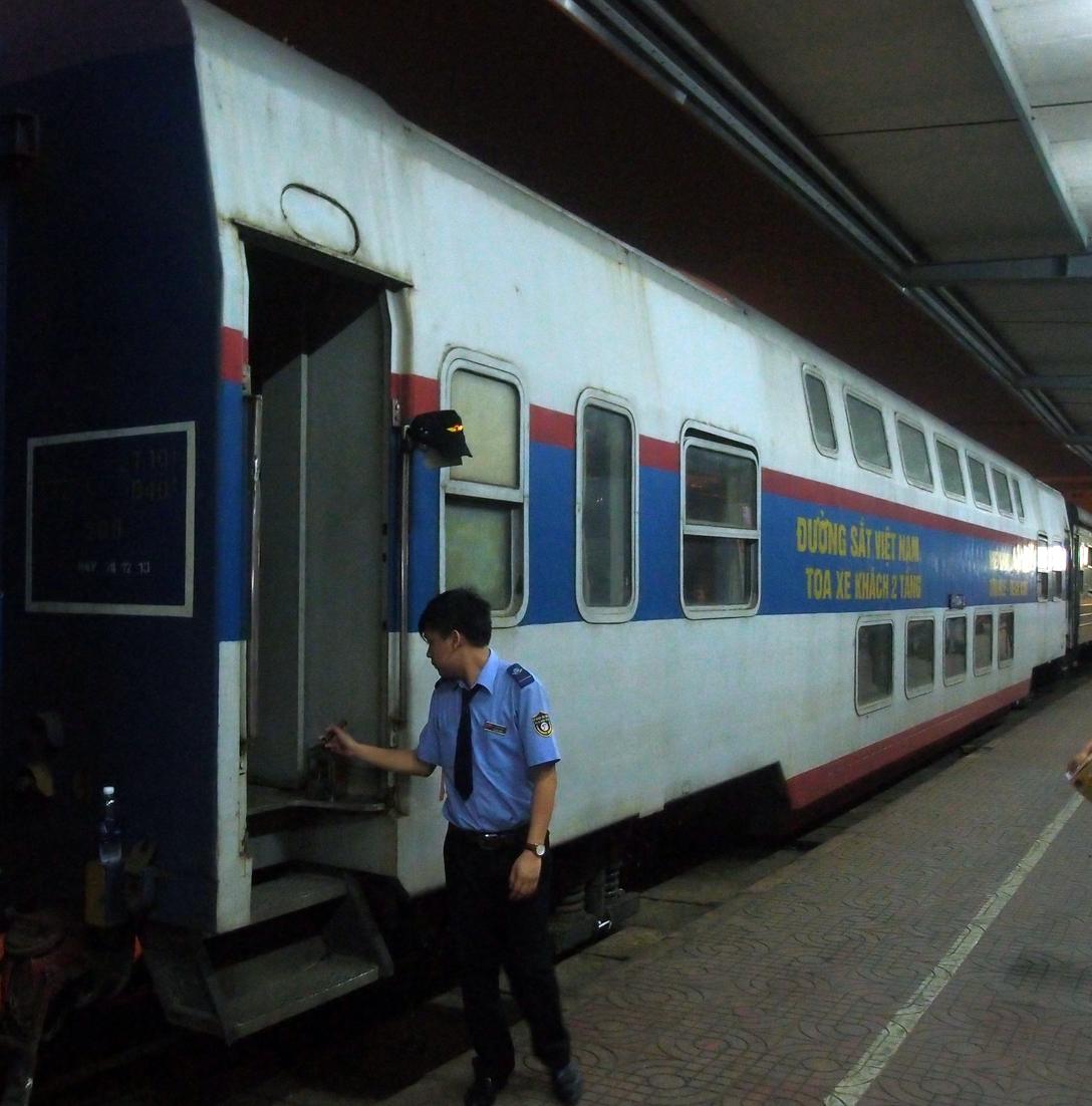 | Double-deck car A 2008. It is remarkable that Vietnam Railways manage to build a double-deck car in the restricted profile of metre gauge, however there are no entire trains of double-deck cars, we have only seen this one. Hanoi. 2014-05-15. |