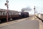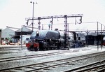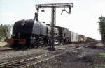 Zimbabwe_2_Bulawayo_shed_15A_374_(BP 7270.1949)_not_ refurbished_27.9.1981 Class 15A Garratt No.374 (BP 7270/1949) leaves Bulawayo shed on 27th September 1981, to pick up its freight train for Thompson Junction. Of the 74 Class 15A built, 33 would be refurbished under a ZR scheme to help bring the railways back from the depredations of the civil war; No.374 would not be one of those updated. roger.griffiths@hotmail.com |