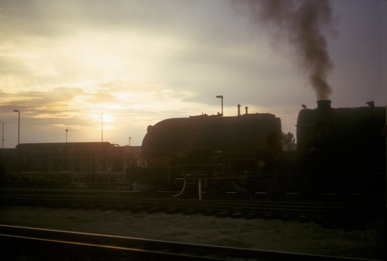 Gwelo_station_15A_Garratt_sunset. The setting sun of 27th October 1973 silhouettes and unidentified Class 15A Beyer Garratt waiting to depart with it mixed train for Bulawayo. roger.griffiths@hotmail.com |