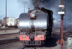 Zimbabwe_16_Victoria_Falls_station_1730_to_Bulawayo_16A_602 (ex-626)_(BP 7504.1952)_28.9.81 The sun has been gone for some time, so the photographer pushes Kodachrome 64 to the limit, to catch 16A 602 (BP 7504/1952), blast out of Victoria Falls station with the 1730 overnight train to Bulawayo. The locomotive had been numbered 626 before refurbishment by RESSCO. The date was 28th September 1981. roger.griffiths@hotmail.com |