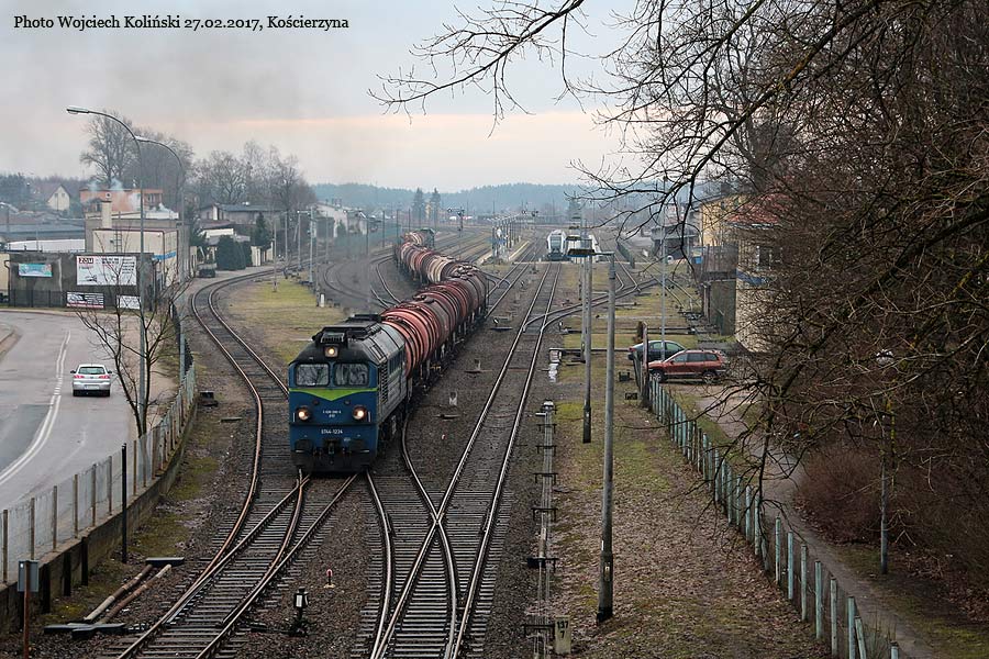 PKP Cargo ST44-1234 with the freight train Gdynia Port - Lipusz (SM42-1289 at the end) 27.02.2017, Lipusz Photo W. Kolins |