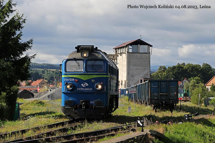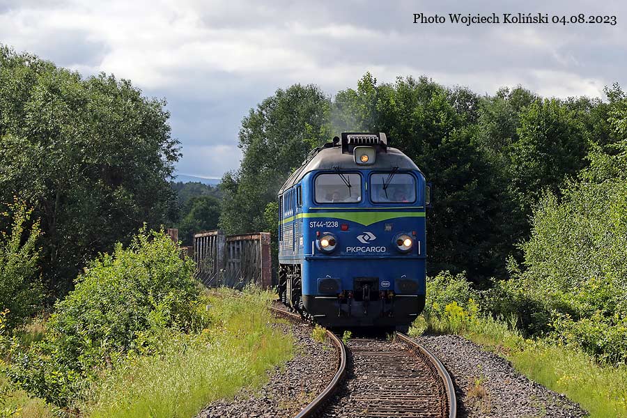 PKP Cargo ST44-1238 is going from Lesna to Luban 04.08.2023, track Koscielniki Gorne - Koscielniki Dolne Photo W. Kolins |