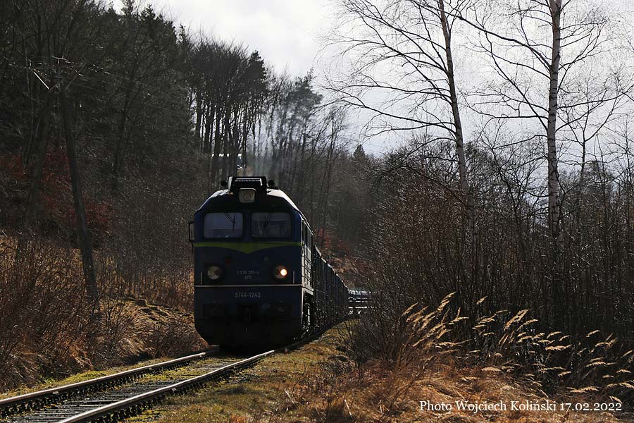 PKP Cargo ST44-1242 is going from Nowa Ruda Slupiec to Scinawka Srednia 17.02.2022, track Nowa Ruda Slupiec - Scinawka Srednia Photo W. Kolins |