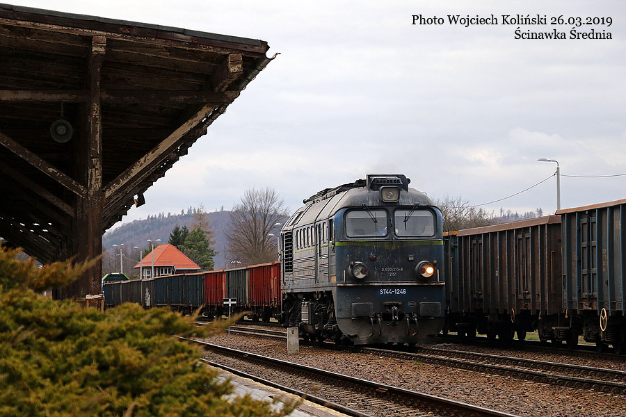 PKP Cargo ST44-1246 with the freight train to Klodzko Glowne 26.03.2019, Scinawka Srednia Photo W. Kolins |