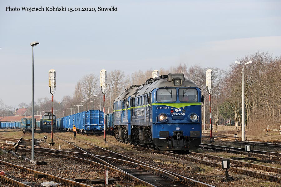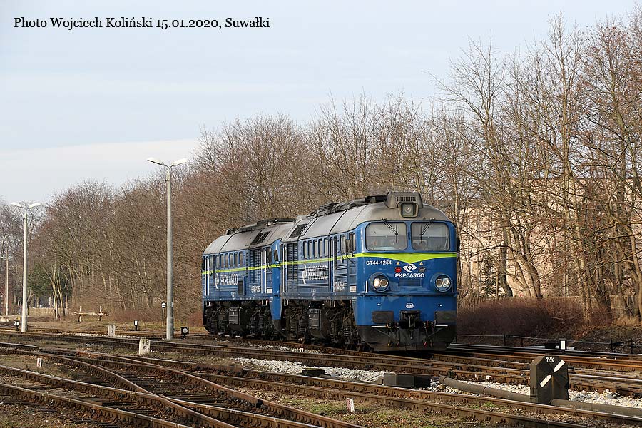 PKP Cargo ST44-1254 + ST44-1253, maneuvers at the station 15.01.2020, Suwalki Photo W. Kolins |