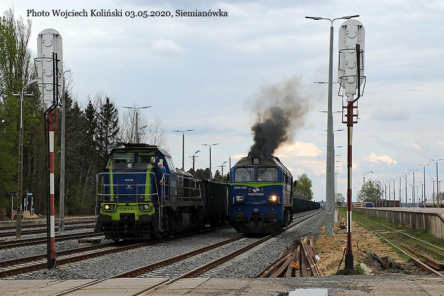 PKP Cargo ST44-1255, maneuvers at the station and ST48-033 with the freight train Siemianowka - Radomsko 03.05.2020, Siemianowka Photo W. Kolins |