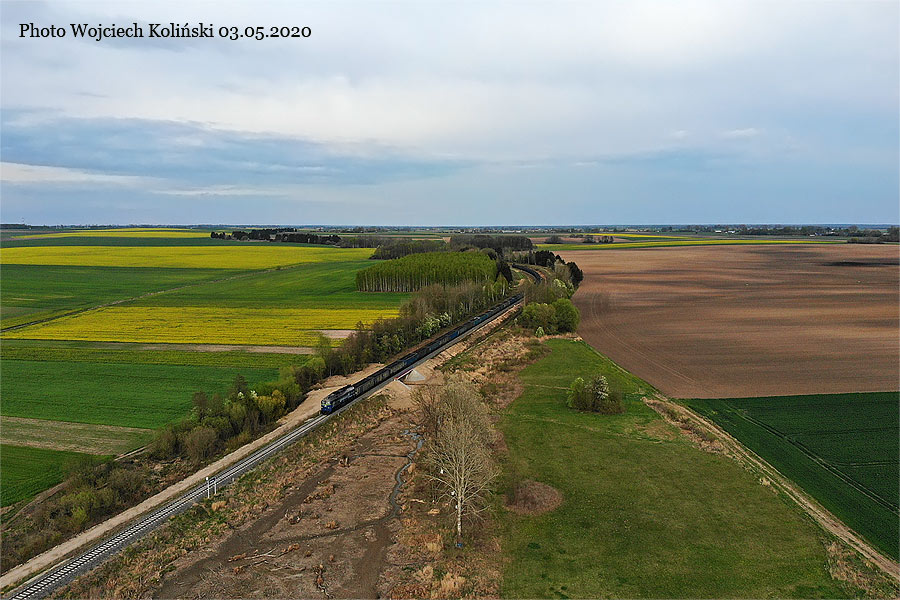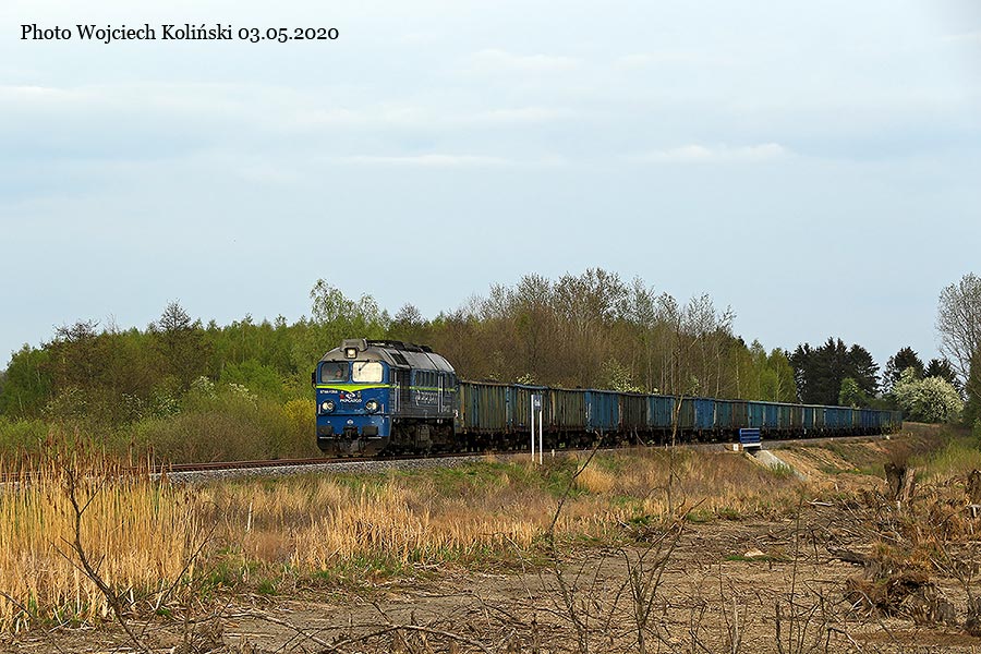 PKP Cargo ST44-1255 with the freight train Siemianowka - Radomsko (ST48-033 as the leader) 03.05.2020, Narewka Photo W. Kolins |