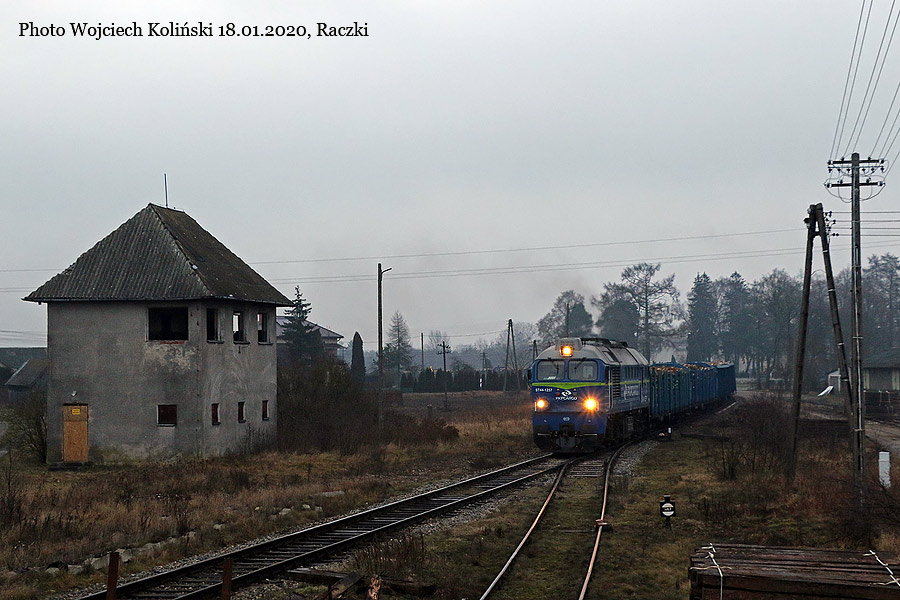 PKP Cargo ST44-1257 with the freight train Suwalki - Terespol Pomorski 18.01.2020, Raczki Photo W. Kolins |