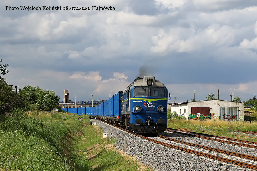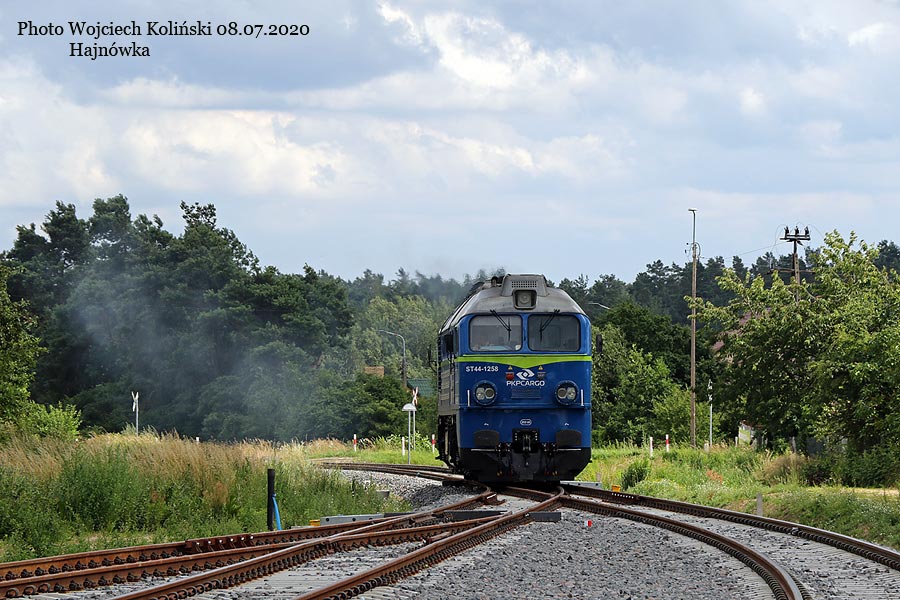 PKP Cargo ST44-1258 with the freight train Siemianowka - Szczecinek 08.07.2020, Hajnowka Photo W. Kolins |