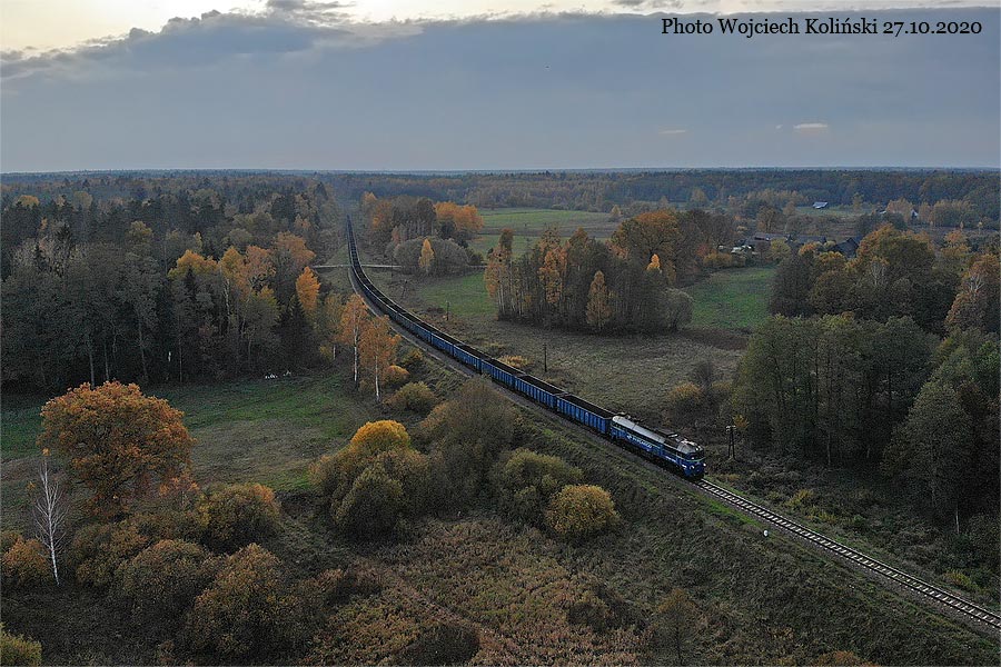 PKP Cargo ST44-1258 with the freight train Bielsk Podlaski - Siemianowka 27.10.2020, track Bernadczyzna - Narewka Photo W. Kolins |