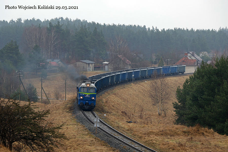 PKP Cargo ST44-1264 with the freight train Rybnik Towarowy - Lipusz 29.03.2021, track Podles - Koscierzyna Photo W. Kolins |
