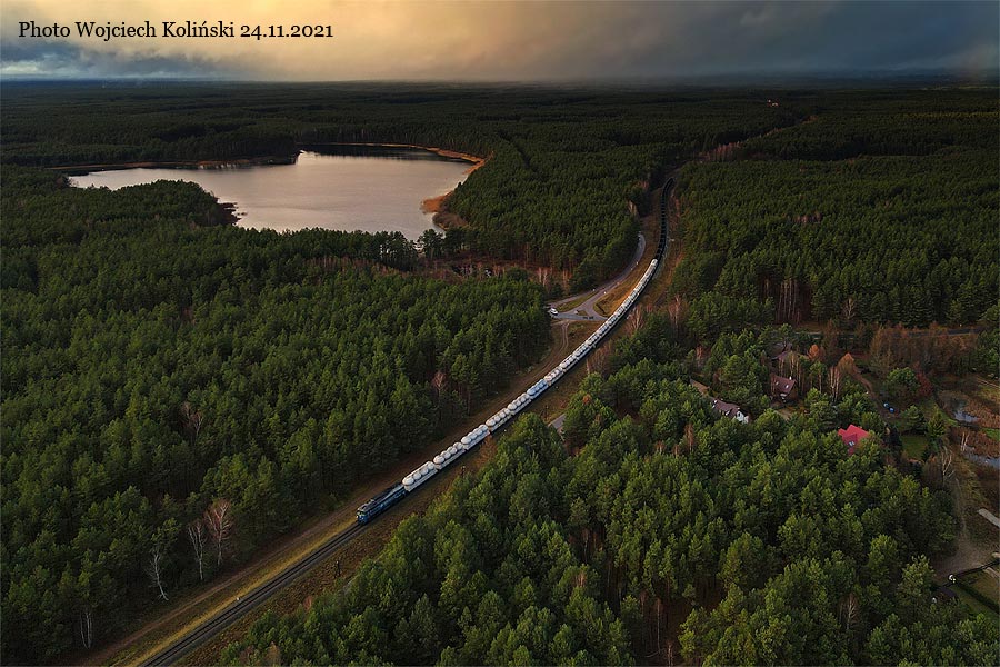 PKP Cargo ST44-1264 with the freight train Lipusz - Inowroclaw Towarowy 24.11.2021, track Olpuch - Wdzydze Photo W. Kolins |