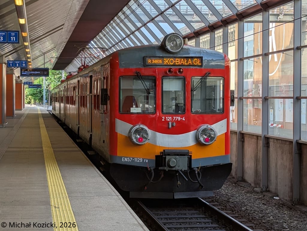PolRegio EN57-1129 will depart from Krakow Gl. on a service to Bielsko-Biala, Poland, 26.06.2025.