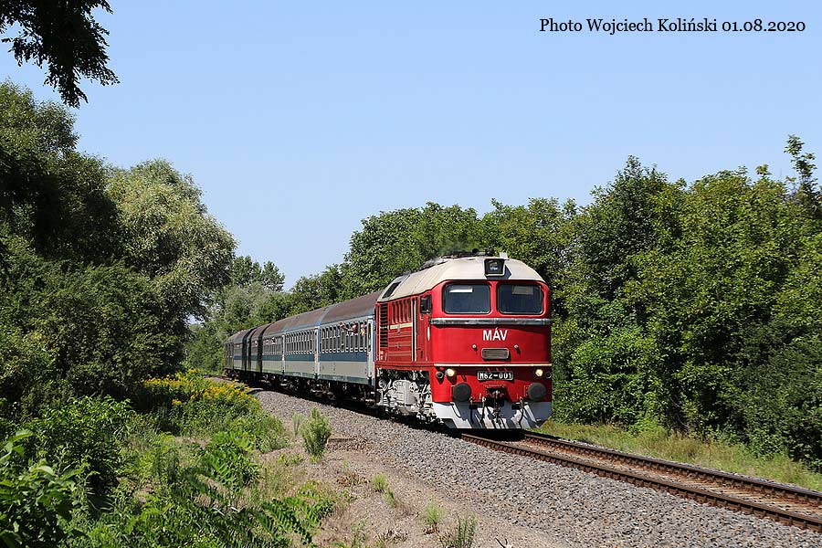Magyar Allamvasutak M62-001 with the passenger train "Kek Hullam" Budapest-Deli - Tapolca 01.08.2020, Badacsonytomaj Photo W. Kolins |