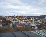 DB Stuttgart Hbf. Dezember 1998. Blick von der Aussichtsplattform des Bahnhofsturms auf die Alte Staatsgalerie, den Eingang zum Wagenburgtunnel und die SSB Haltestelle Staatsgalerie (unterirdisch). Digital photo by M.Koblischka |