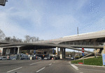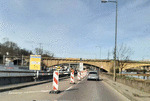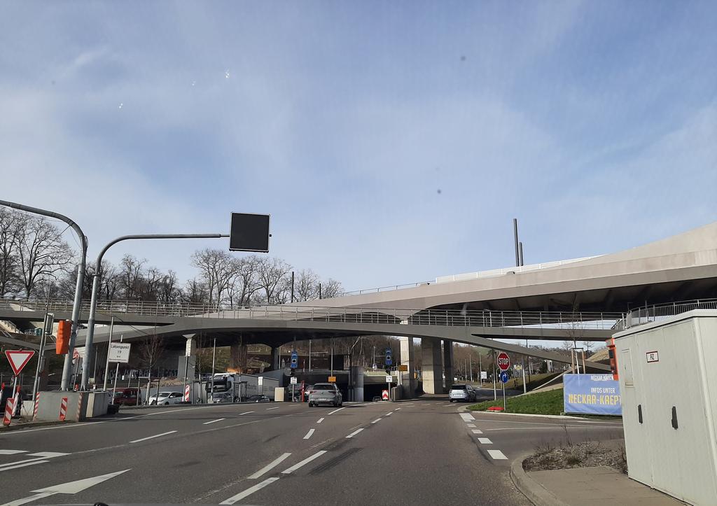 Neckartalstrasse (B10). Februar 2024. Die neue Neckarbrücke der DB und ein Fussgängersteg vor dem Wilhelma-Gelände. Die B10 verschwindet hier jetzt in einem Tunnel. Im Hintergrund die SSB-Haltestelle Wilhelma. Photo by M.Koblischka |