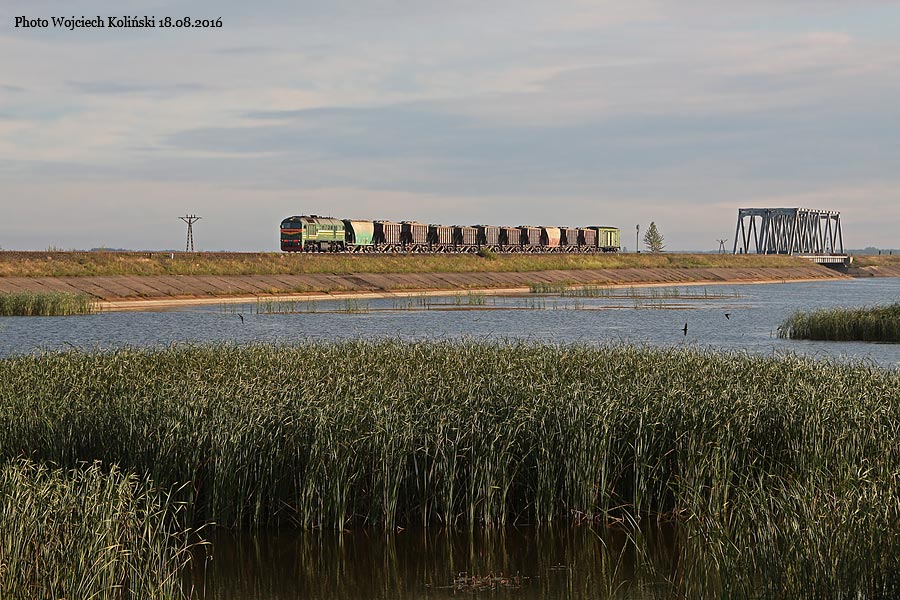Belarusian Railways (Belaruskaja Czyhunka) M62-1351 with the freight train Siemianowka - Swislocz (Belarus) 18.08.2016, track Siemianowka - Cisowka Photo W. Kolins |