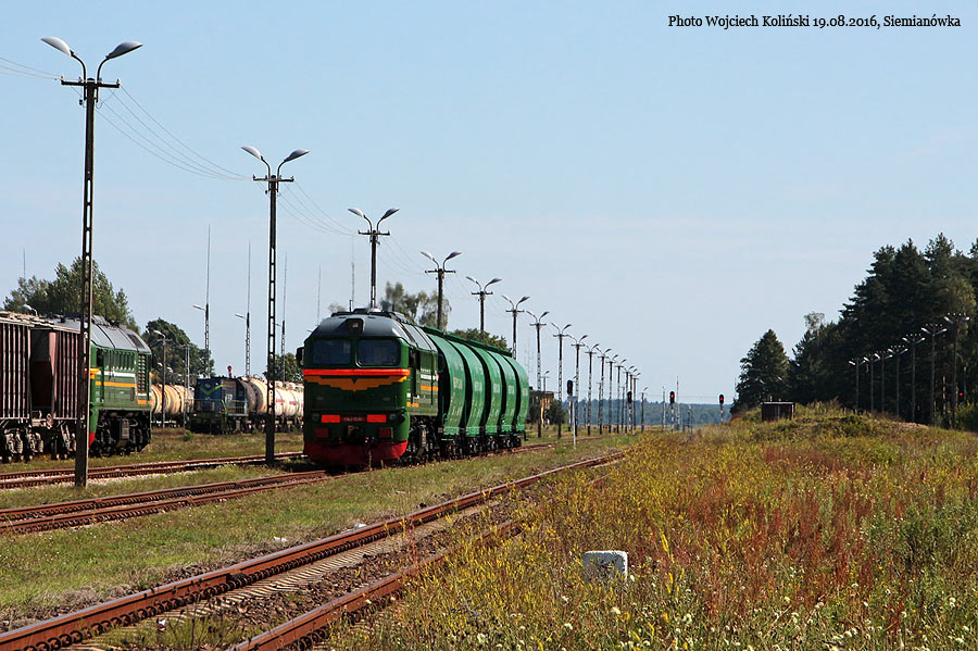 Belarusian Railways (Belaruskaja Czyhunka) M62-1351 with the freight train Swislocz (Belarus) - Siemianowka 18.08.2016, track Cisowka - Siemianowka Photo W. Kolins |