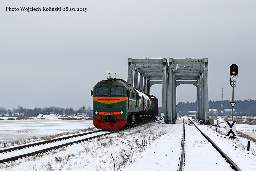 Belarusian Railways (Belaruskaja Czyhunka) M62-1530 with the freight train Siemianowka - Swislocz (Belarus) 08.01.2019, track Siemianowka - Cisowka Photo W. Kolins |