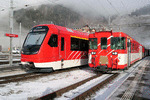 MGB - Switzerland From 2026 the unmodernised locomotives class HGe 4/4 II, all motor cars class Deh 4/4 and all old passenger coaches will be replaced by 25 more type "Orion" trainsets, that already operate between Andermatt and Disentis. An "Orion" trainset and an old train with driving trailer are seen at Andermatt. Andermatt, 30-12-2025 Photo by Marco van Uden |