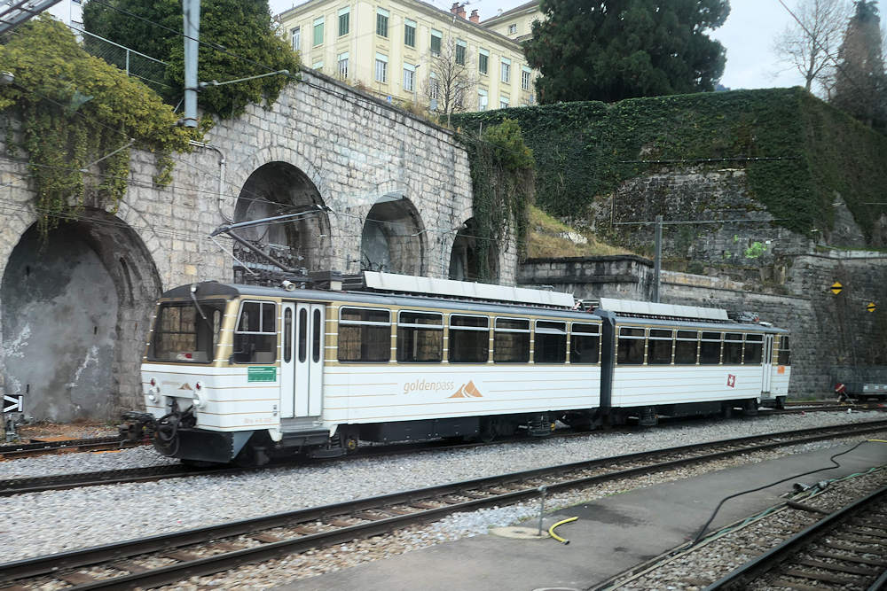 MOB - Switzerland Modern Stadler motor car ABe 4/4 nr. 9303 after hauling the Belle Epoque historic set of coaches from Zweisimmen to Montreux. Montreux, 02-01-2026 Photo by Marco van Uden |
