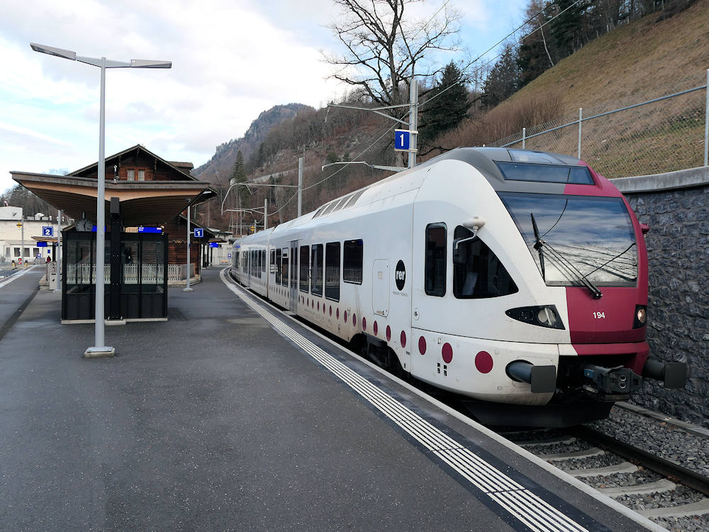 TPF - Switzerland Standard gauge trainset RABe 527 194 has operated the RE train from Berne and has just arrived at end station Broc Chocolaterie. The line from Bulle to Broc Fabrique (now Chocolaterie) was recently rebuilt from narrow gauge to standard gauge. Broc, 02-01-2026 Photo by Marco van Uden |