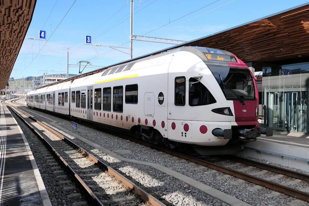 TPF - Switzerland On its way from Broc Chocolaterie to Berne, standard gauge trainset RABe 527 194 takes a short break at Bulle. Bulle, 02-01-2026 Photo by Marco van Uden |