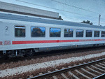 A second class Intercity passenger car of class 97, type "Bpmbz" at central railway station Burgas in composition of IC train with number 3683 from Sofia via Karlovo.