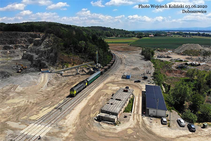 Pomorskie Przedsiebiorstwo Mechaniczno-Torowe (PPMT) M62-1705 + M62-1769, loading of crushed stone 03.07.2020, Doboszowice Photo W. Kolins |