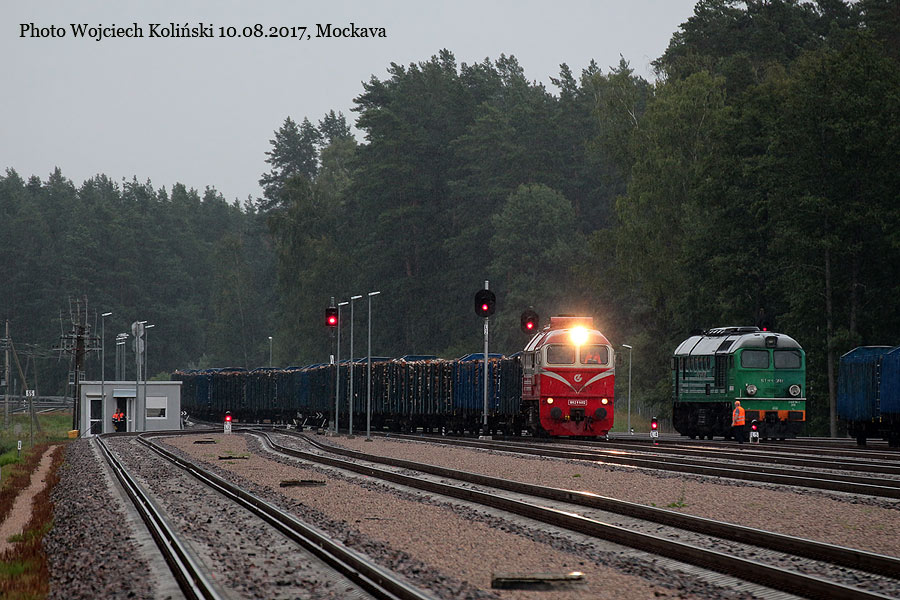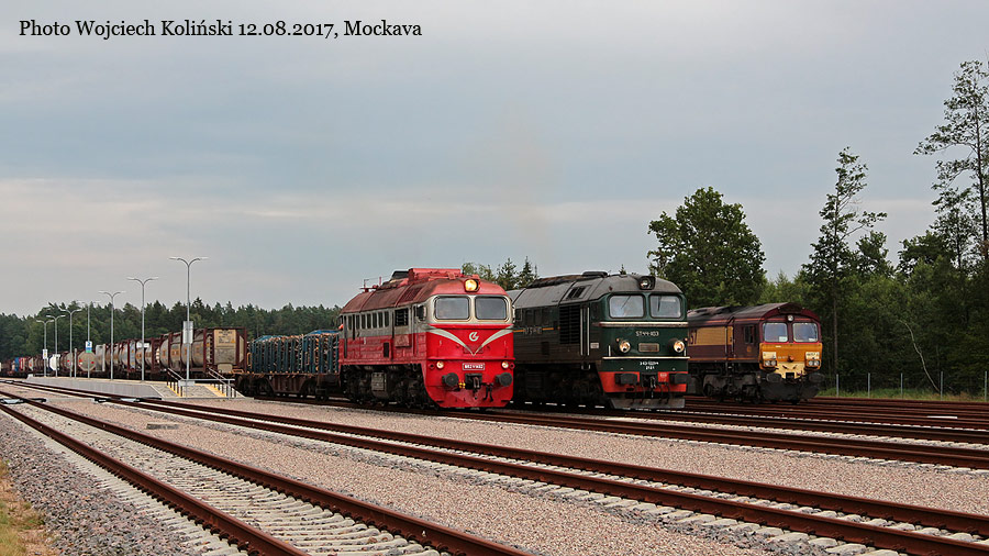 Lietuvos Gelezinkeliai (LG) M62K-1150 with the freight train to Sestokai (and ST44-1103) 31.07.2017, Mockava Photo W. Kolins |
