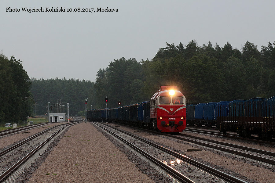 Lietuvos Gelezinkeliai (LG) M62K-1482 with the freight train from Sestokai 10.08.2017, Mockava Photo W. Kolins |