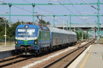 A private electric locomotive SIEMENS Vectron with number 91 52 10 81 972 - 7, owned by private operator "PIMK Rail" standing at railway station Todor Kableshkov before pulling a freight train.