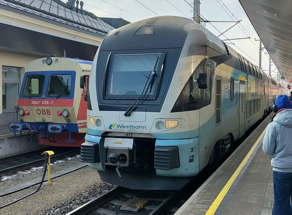 | 91 81 1293 138-4 A-ÖBB with regional train consisting of a curious mix of single and double deck cars. This kind of train will probably remain a regular sight until the delivery of new KISS units. St. Pölten, 2026-01-21. |