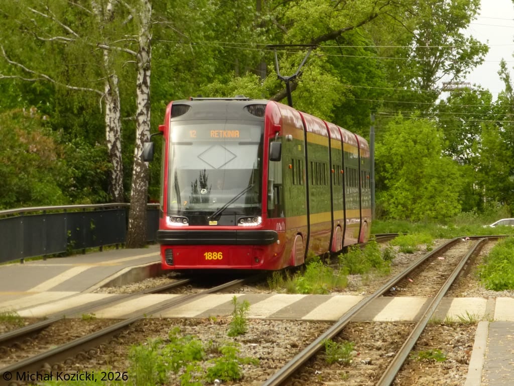 Pesa 122NaL No. 1886 on route 12 at Telefoniczna Zajezdnia, Lodz, Poland, 06.05.2024.