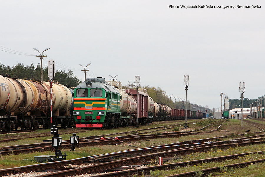 Belarusian Railways (Belaruskaja Czyhunka) M62UK-3101 with the freight train Siemianowka - Swislocz (Belarus) 02.05.2017, Siemianowka Photo W. Kolins |
