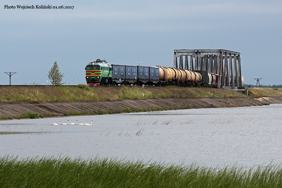 Belarusian Railways (Belaruskaja Czyhunka) M62UK-3101 with the freight train Swislocz (Belarus) - Siemianowka 01.06.2017, track Cisowka - Siemianowka Photo W. Kolins |
