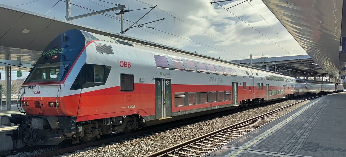| A-ÖBB 50 81 86-33 023-1 Bbfmpz, doubledeck cab car in cityjet livery with VOR branding. Wien Praterstern, 2026-02-13. |