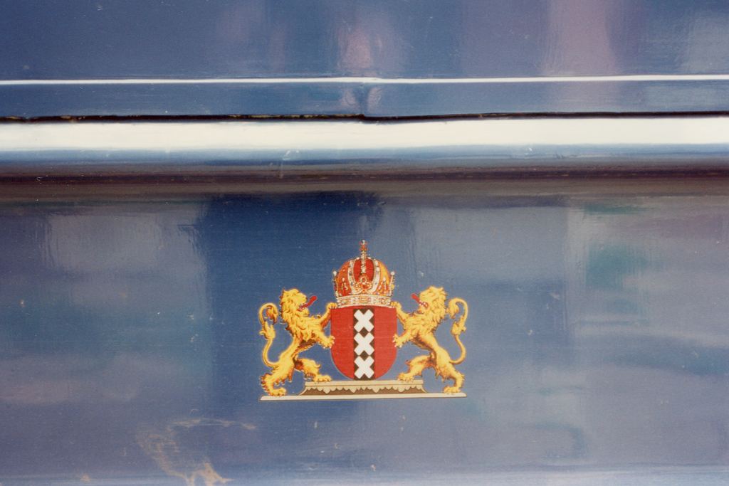Electrische Museumtramlijn Amsterdam -- Amsterdam No. 401. 1993. Crest of Amsterdam on the car side. Photo and scan by M.R.Koblischka |