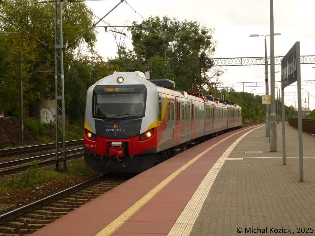 PolRegio EN57AL-959 is stopping at Poznan Staroleka on a service from Lodz Kaliska, Poland, 11.09.2024.