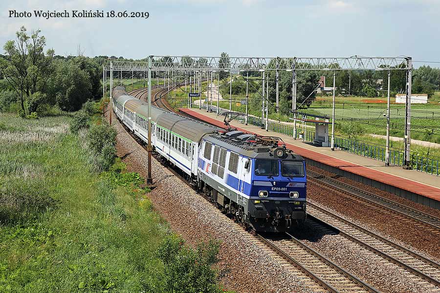 PKP Intercity EP09-001 with the passenger train "Pobrzeze" Kolobrzeg - Wroclaw Glowny 18.06.2019, track Rozyny - Skowarcz Photo W. Kolins |