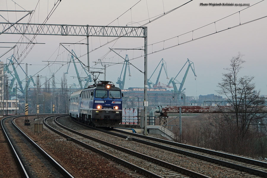 PKP Intercity EP09-008 19.03.2015, track Gdansk Glowny - Gdansk Wrzeszcz Photo W. Kolins |