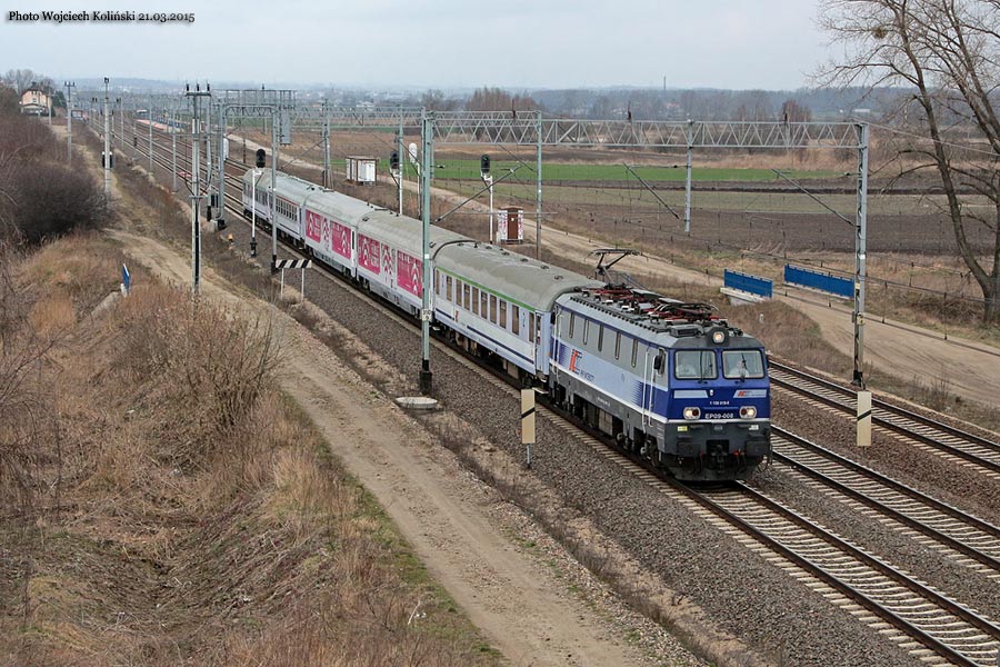 PKP Intercity EP09-008 21.03.2015, track Rozyny - Skowarcz Photo W. Kolins |