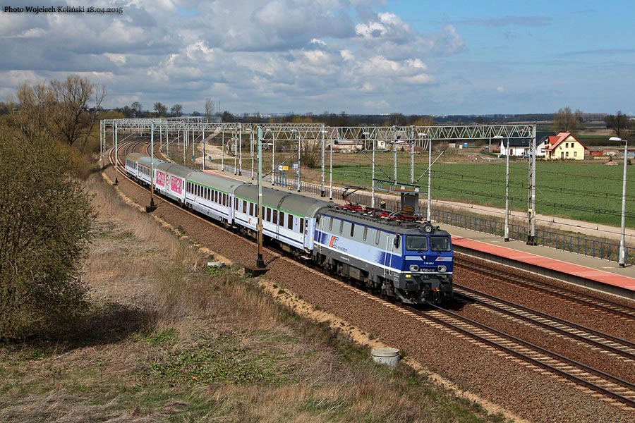 PKP Intercity EP09-001 with the passenger train "Norwid" Gdynia Glowna - Krakow Glowny and 182 164-4 21.03.2015, Rozyny Photo W. Kolins |
