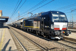 InRail electric loco 191 104 (NVR 91 83 2191 104-5 I-LCIT) running southbound on track 2 at San Giorgio di Piano BO station. 05/03/2025.