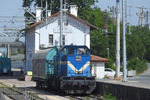 A diesel locomotive DH 9511 of TCDD ( Turkiye Cumhuriyeti Devlet Demiryollari / Turkish Railways ) at railway station Catalca shunting with freight cars.