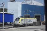An electric locomotive E68 075 of TCDD ( Turkiye Cumhuriyeti Devlet Demiryollari / Turkish Railways ) in depot near railway station Istanbul HalkalI.