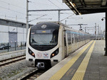 A 2 EMUs of type E 32000 of TCDD ( Turkiye Cumhuriyeti Devlet Demiryollari / Turkish Railways ), at railway station HalkalI using a "Marmaray" transport system in Istanbul.