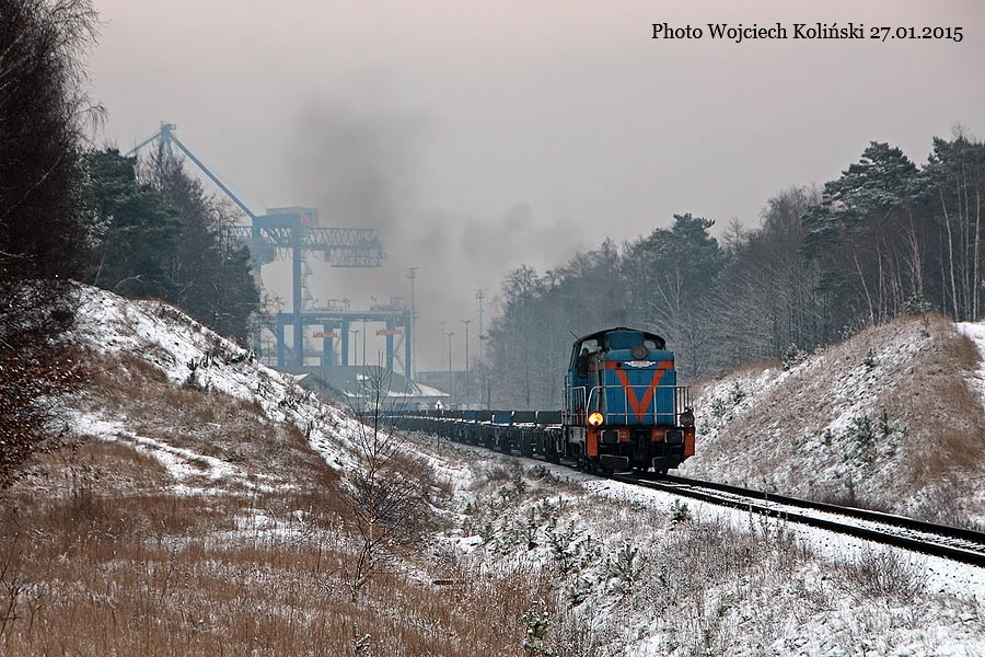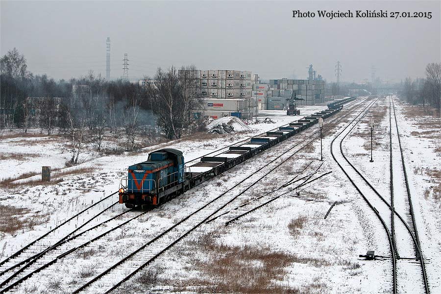 Przedsiebiorstwo Przeladunkowo-Skladowe "Port Polnocny" (PPS PP) SM42-2304 is pulling a train of flatcars from the Deepwater Container Terminal. The locomotive is positioning them for loading on tracks near its base. 27.01.2015, track Deepwater Container Terminal - Gdansk Port Polnocny Photo W. Kolins |