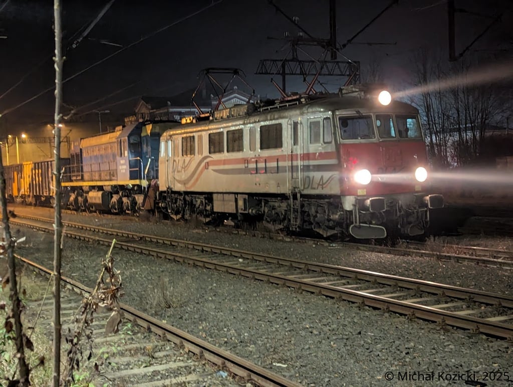 RC Trans Rail EU07-076 and TEM2-271 prepare to leave Luban Slaski with a rake of open wagons loaded with basalt aggregate from Lesna, Poland, 12.11.2025.